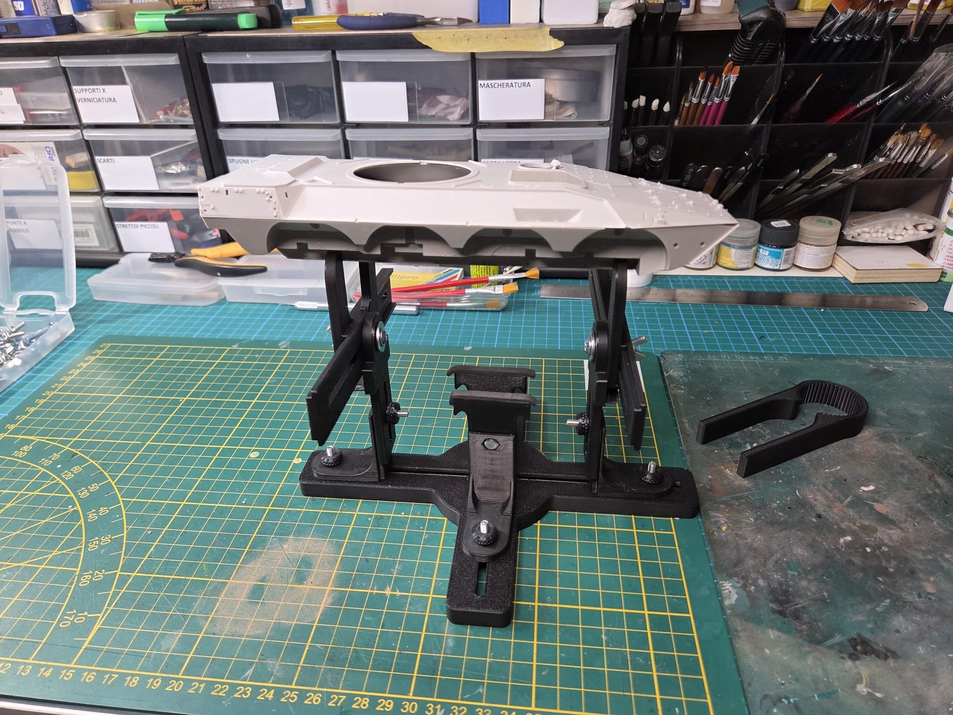 Supporto fondamentale per lavorare sopra i vostri modelli ottimo per assembrare le piccole parti e per verniciare, possibilità di personalizzazione del colore